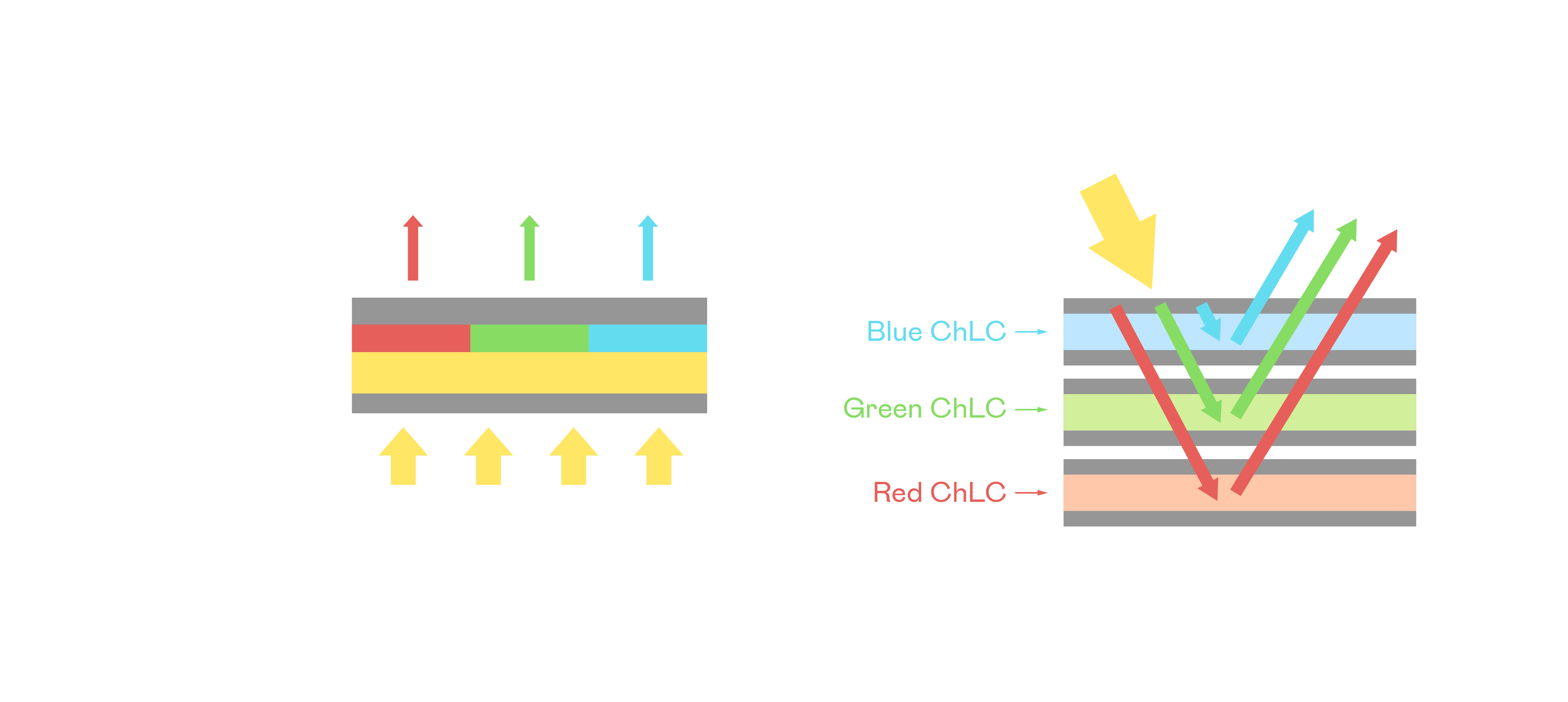 AUO's ChLCD displays utilize a 3-layered red, green, and blue ChLCD panel, and are designed without a color filter to reduce reflectance loss in the process of reflecting environmental light.